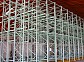 - 후레임은 파렛트랙과 동일한 구조이며 후레임에 암(ARM)을 결착하고 그 위에 레일(RAIL)을 설치하여 파렛트(PALLE T)의 바닥 후레임(FRAME) 이 레일 위에 놓여 지도록 되어 있으며 랙과 랙의 균형 유지를 위하여 상부에 빔을 체결하고 좌 우에 흔들림을 방지하는 TURN BUCKLE 을 사용하여 견고하고 안전한 RACK SYSTEM이다.